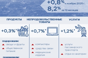 По данным Росстата, цены в Мурманской области в декабре 2025 года по сравнению с ноябрем выросли на 0,8%. При этом годовая инфляция продолжила замедляться и составила 8,2%.